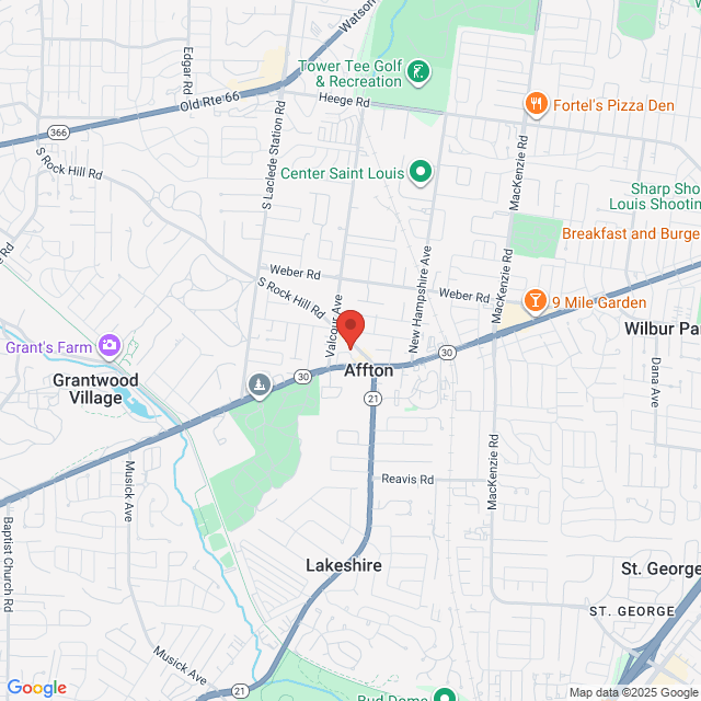 Located within Grasso Plaza next to Club Fitness and behind Walgreen's. Lot is accessible via S Rock Hill Rd and Gravois. Handicap accessible parking available as well as zero drop entrance.